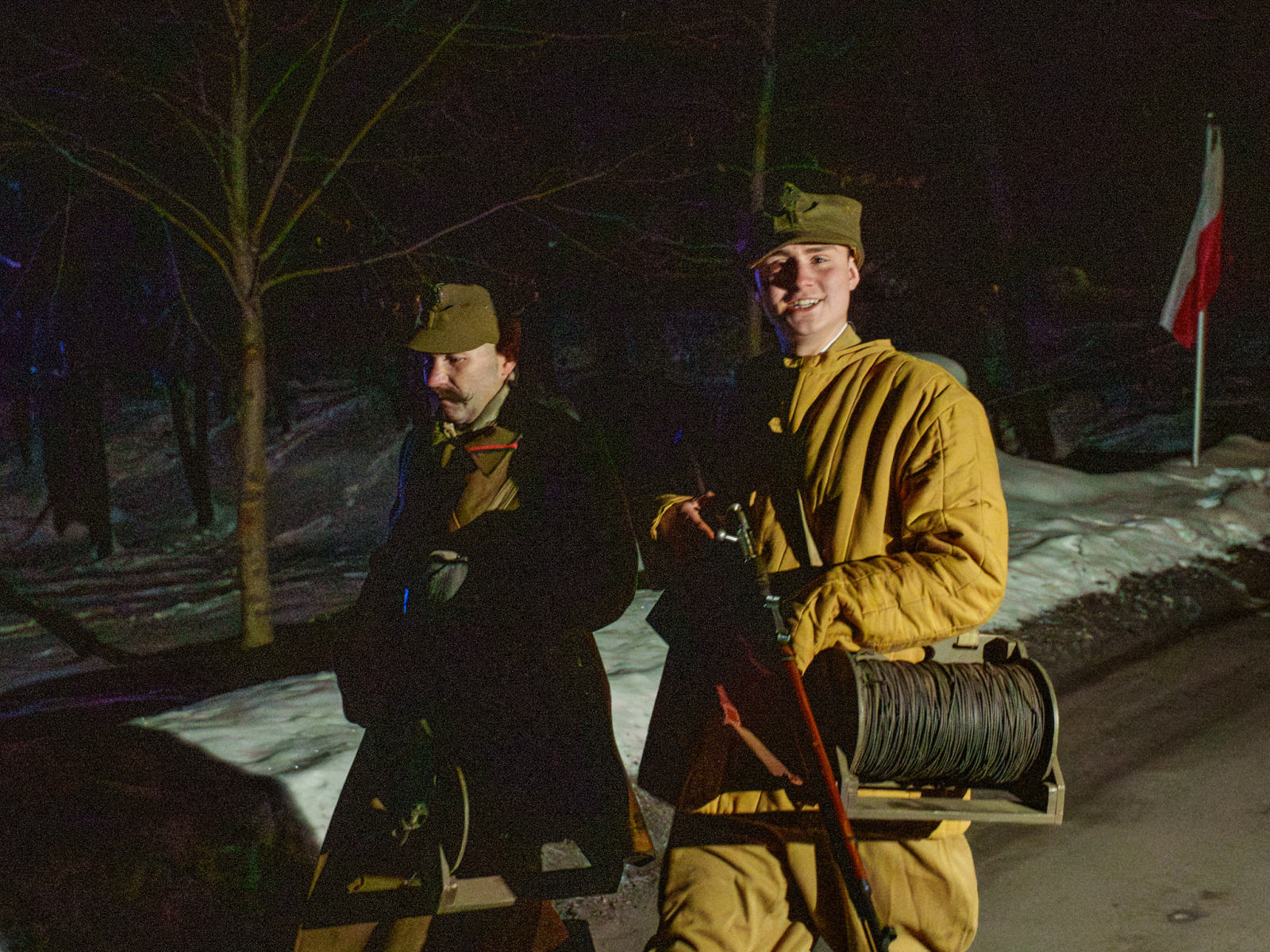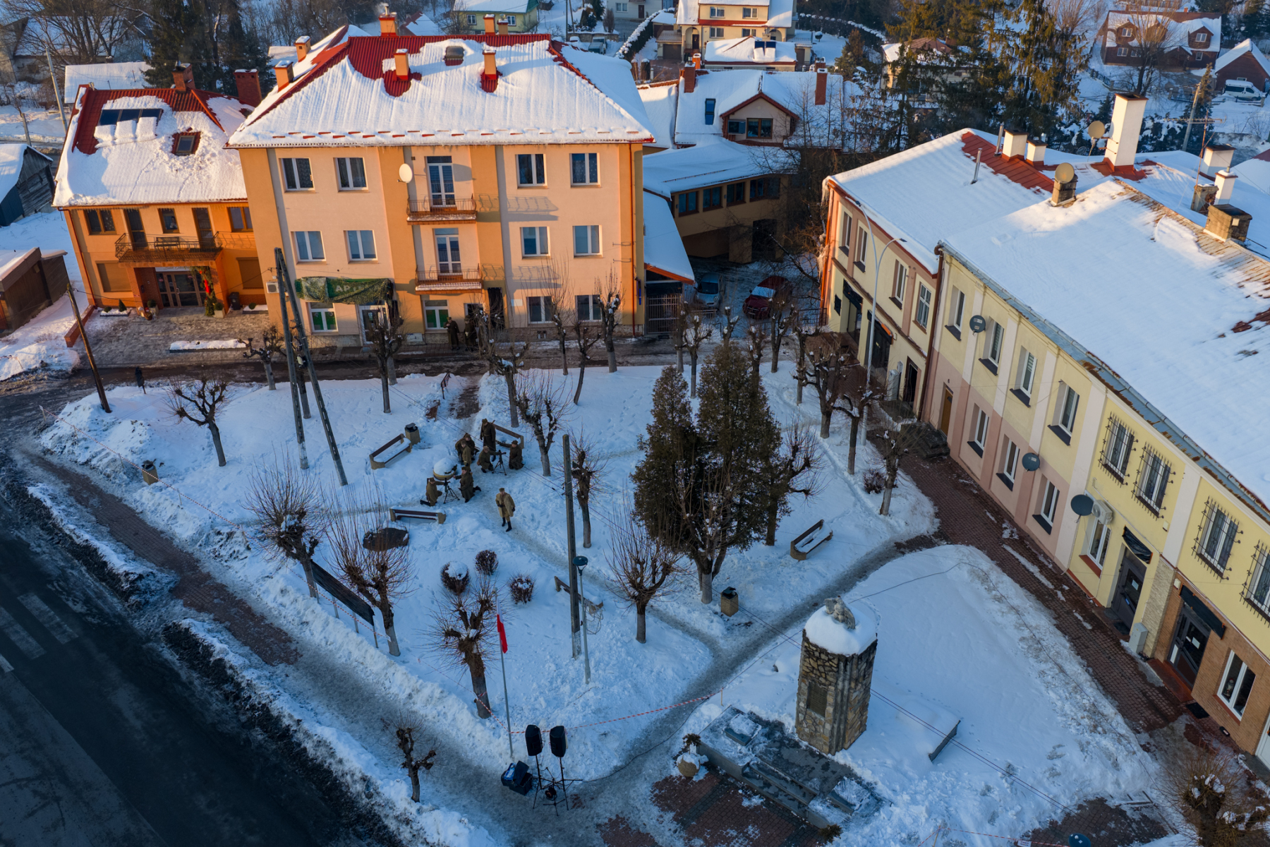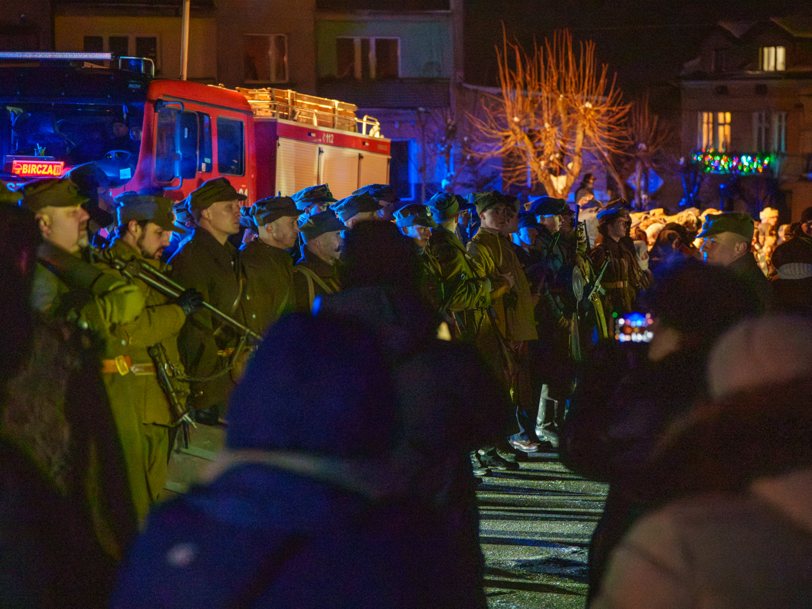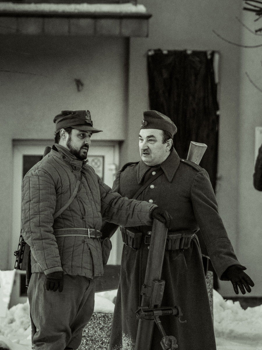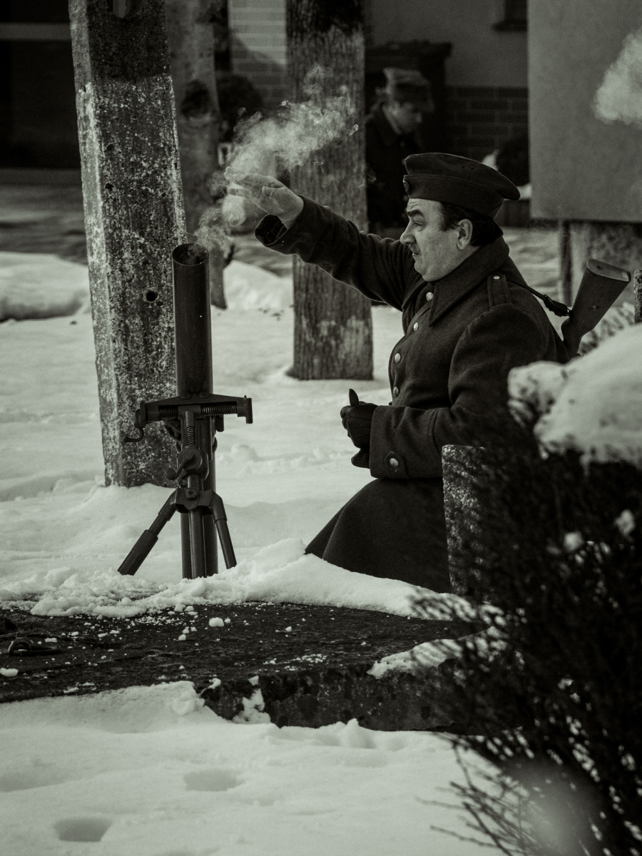 Podczas sesji reportażowej skupiłem się na uchwyceniu dynamiki inscenizowanych walk, reakcji rekonstruktorów i detali, które budują klimat tego typu wydarzeń historycznych. Wykorzystałem zarówno klasyczne kadry z poziomu ulicy, jak i ujęcia z drona, które pokazują zabudowę Birczy, ruch pojazdów służb oraz rozmach całej rekonstrukcji. Zimowa sceneria, śnieg i dym z wybuchów oraz flary świetlne podkreśliły dramatyzm scen, tworząc intensywne, kontrastowe obrazy o wysokiej wartości dokumentalnej i emocjonalnej.