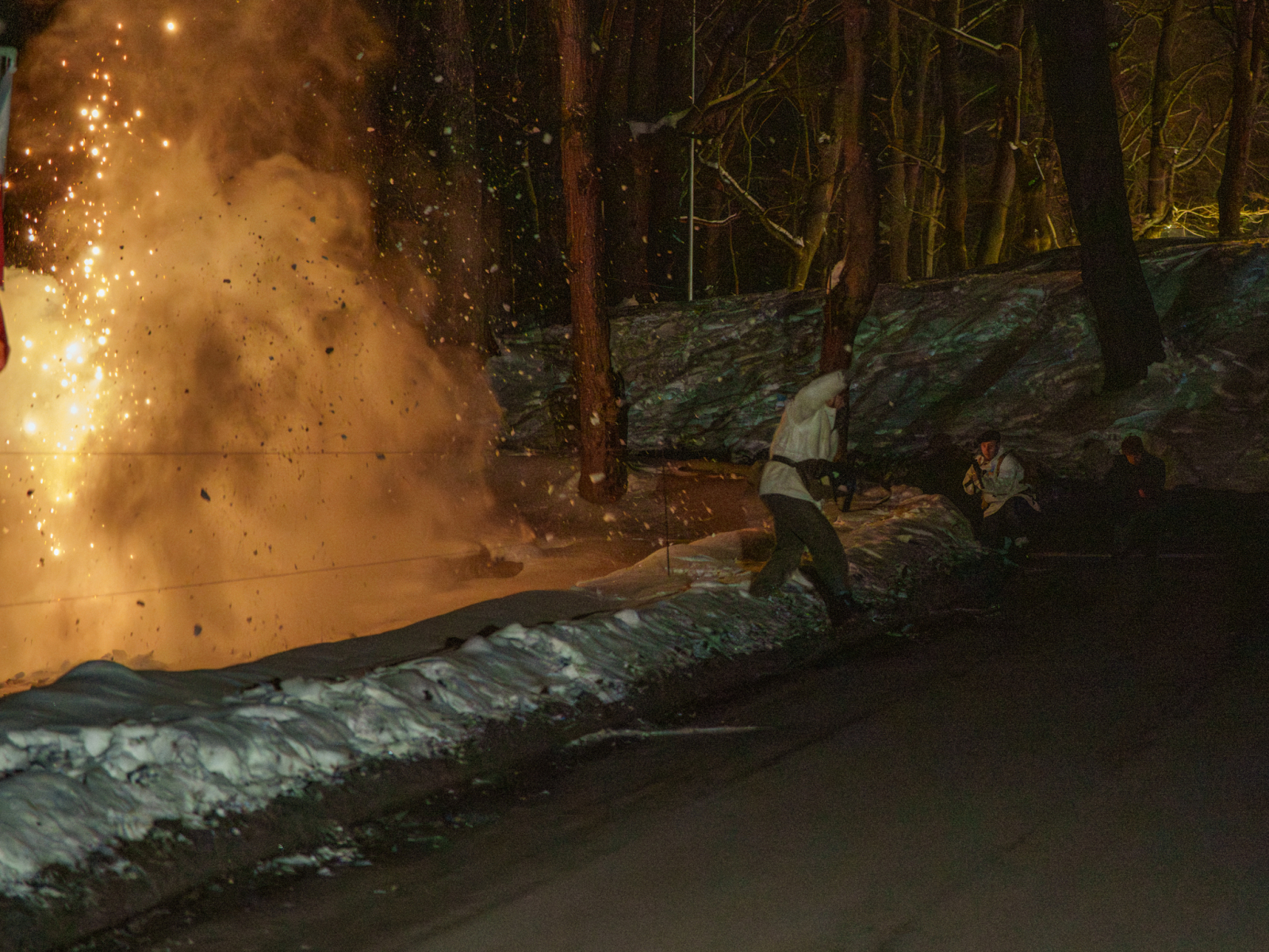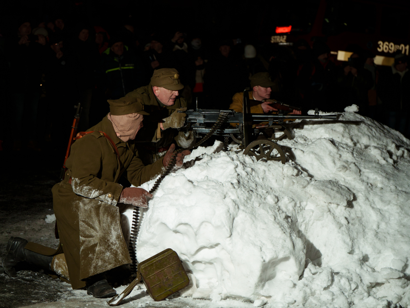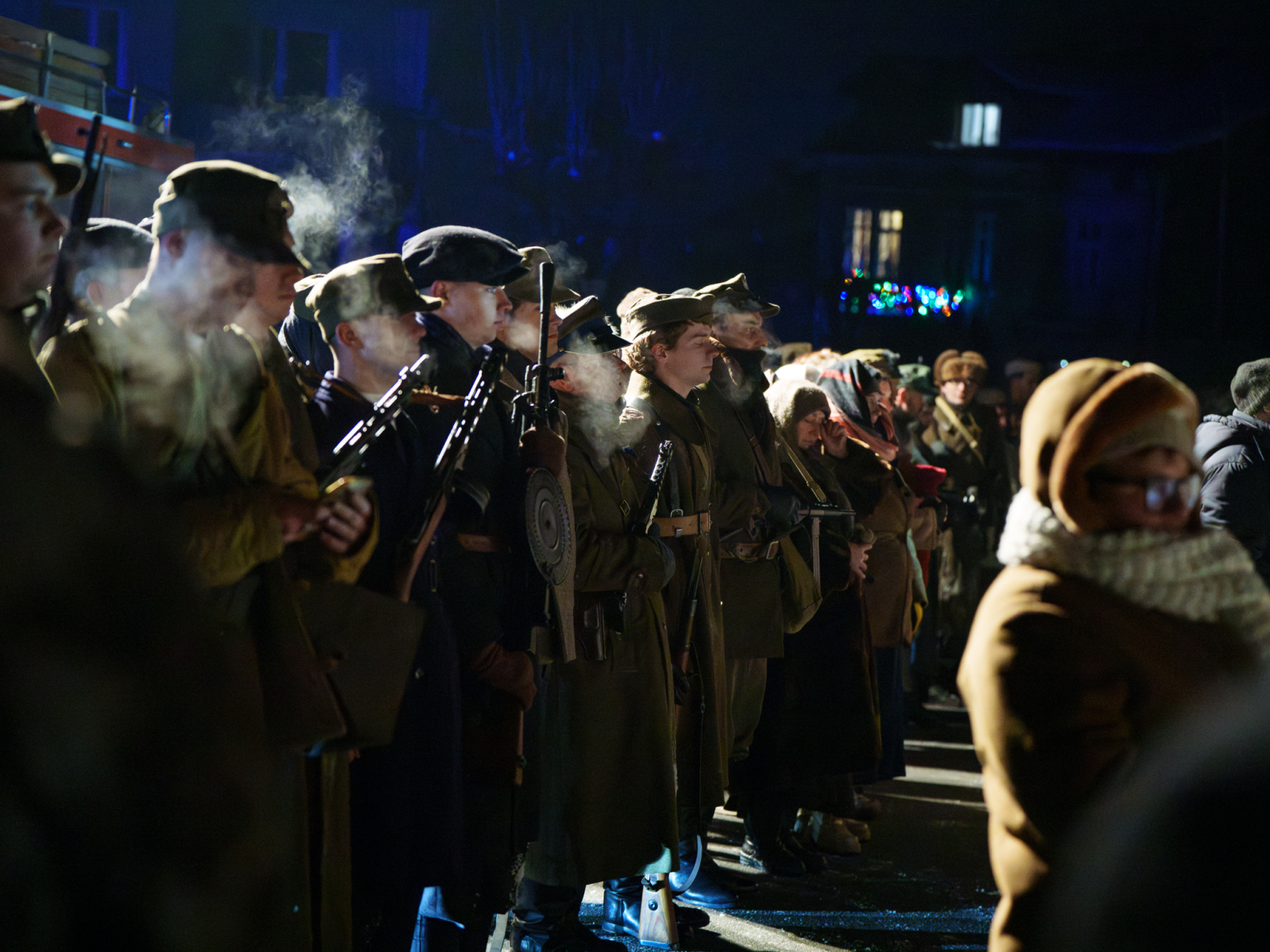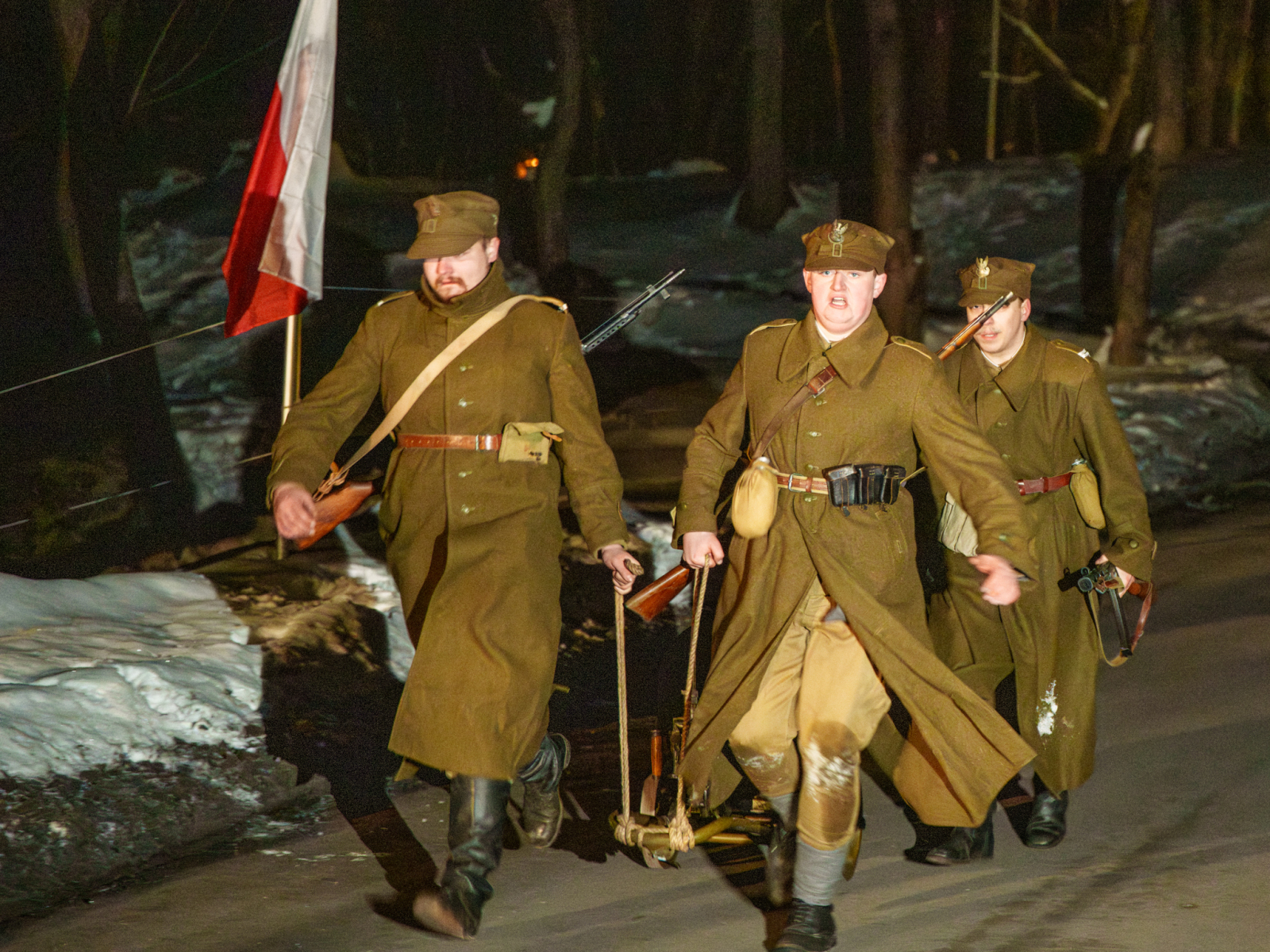 Podczas sesji reportażowej skupiłem się na uchwyceniu dynamiki inscenizowanych walk, reakcji rekonstruktorów i detali, które budują klimat tego typu wydarzeń historycznych. Wykorzystałem zarówno klasyczne kadry z poziomu ulicy, jak i ujęcia z drona, które pokazują zabudowę Birczy, ruch pojazdów służb oraz rozmach całej rekonstrukcji. Zimowa sceneria, śnieg i dym z wybuchów oraz flary świetlne podkreśliły dramatyzm scen, tworząc intensywne, kontrastowe obrazy o wysokiej wartości dokumentalnej i emocjonalnej.