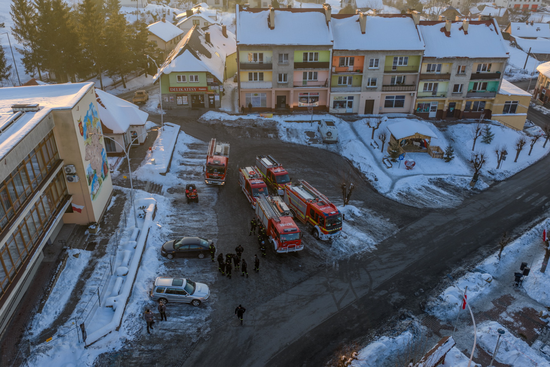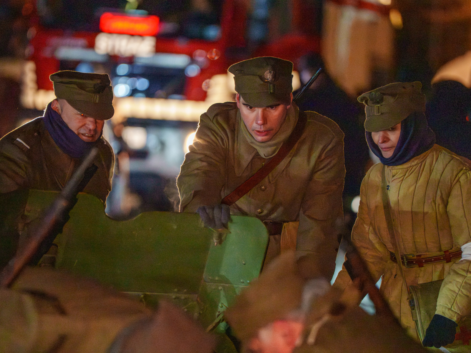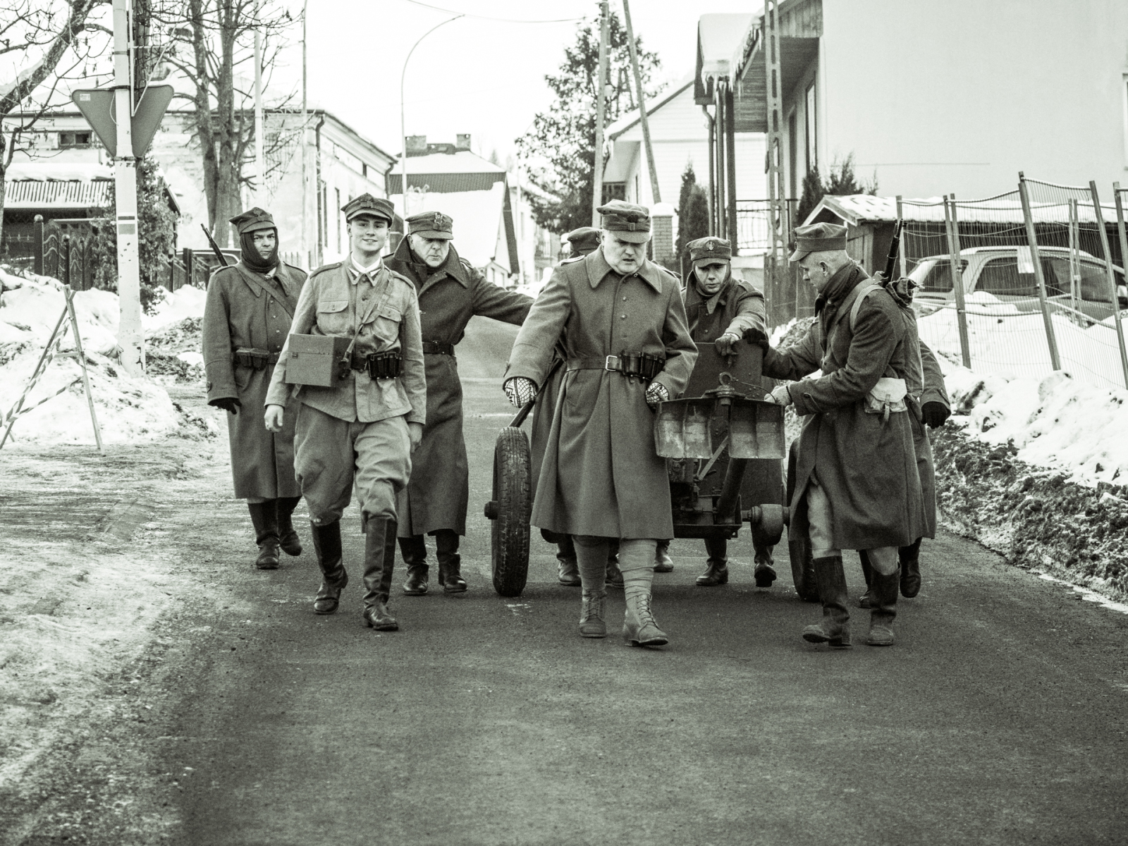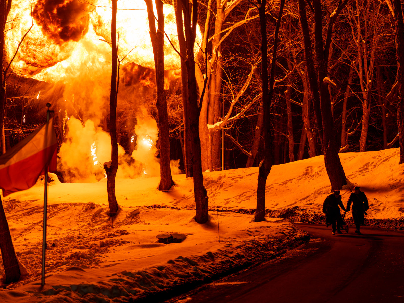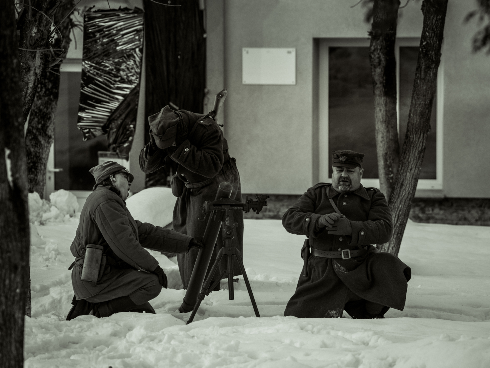 Podczas sesji reportażowej skupiłem się na uchwyceniu dynamiki inscenizowanych walk, reakcji rekonstruktorów i detali, które budują klimat tego typu wydarzeń historycznych. Wykorzystałem zarówno klasyczne kadry z poziomu ulicy, jak i ujęcia z drona, które pokazują zabudowę Birczy, ruch pojazdów służb oraz rozmach całej rekonstrukcji. Zimowa sceneria, śnieg i dym z wybuchów oraz flary świetlne podkreśliły dramatyzm scen, tworząc intensywne, kontrastowe obrazy o wysokiej wartości dokumentalnej i emocjonalnej.