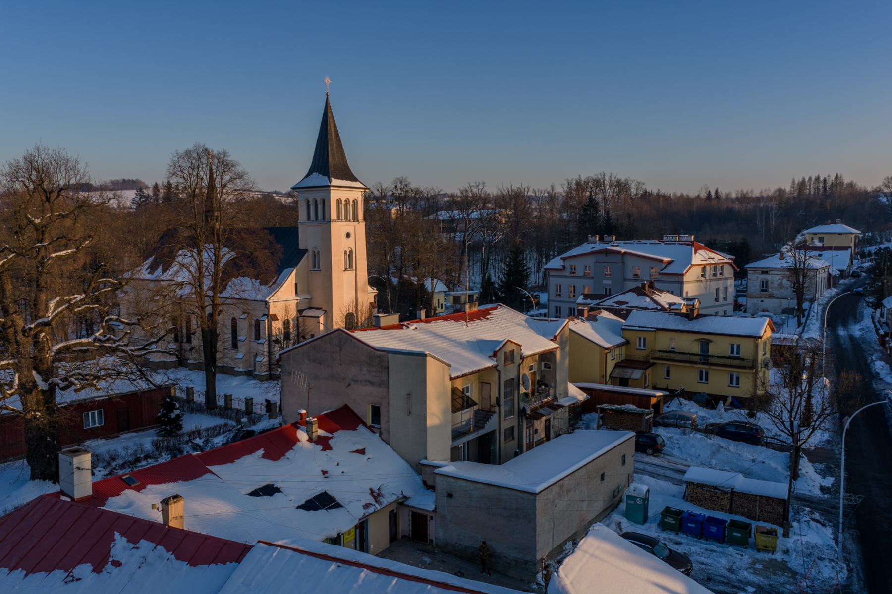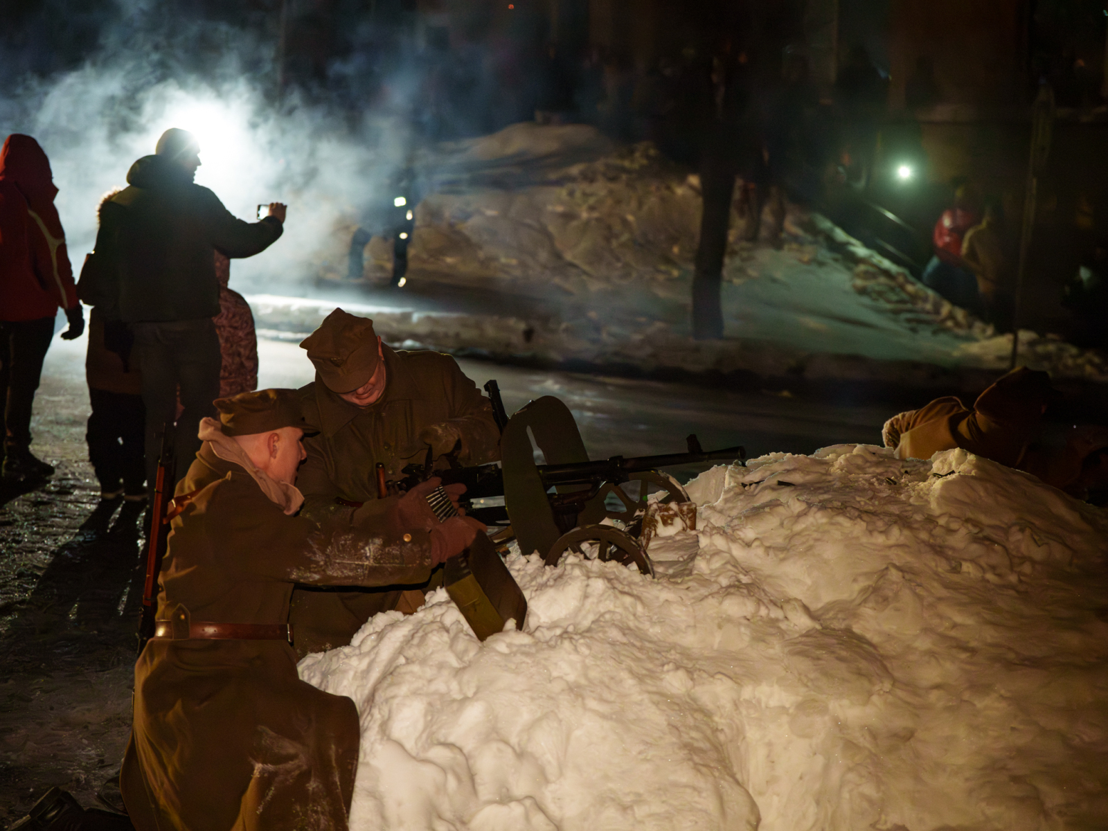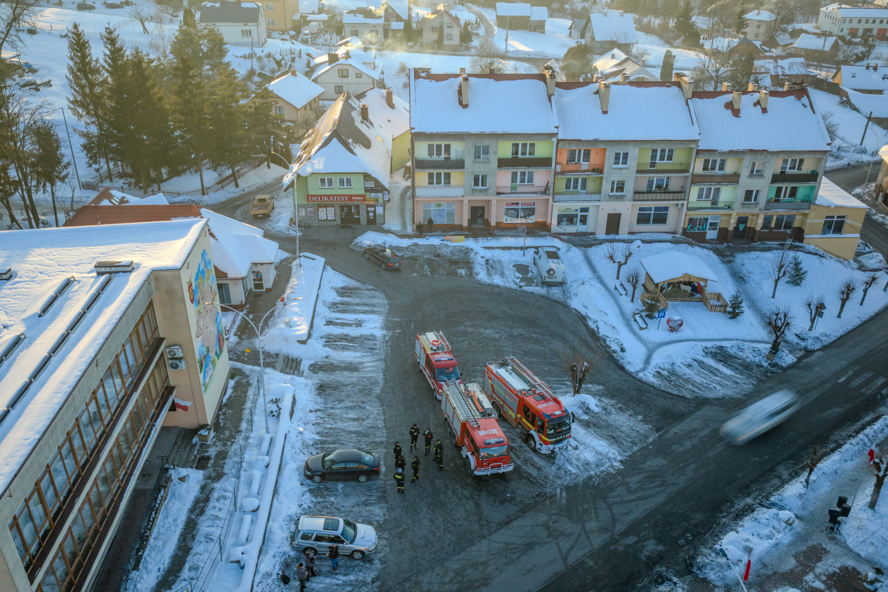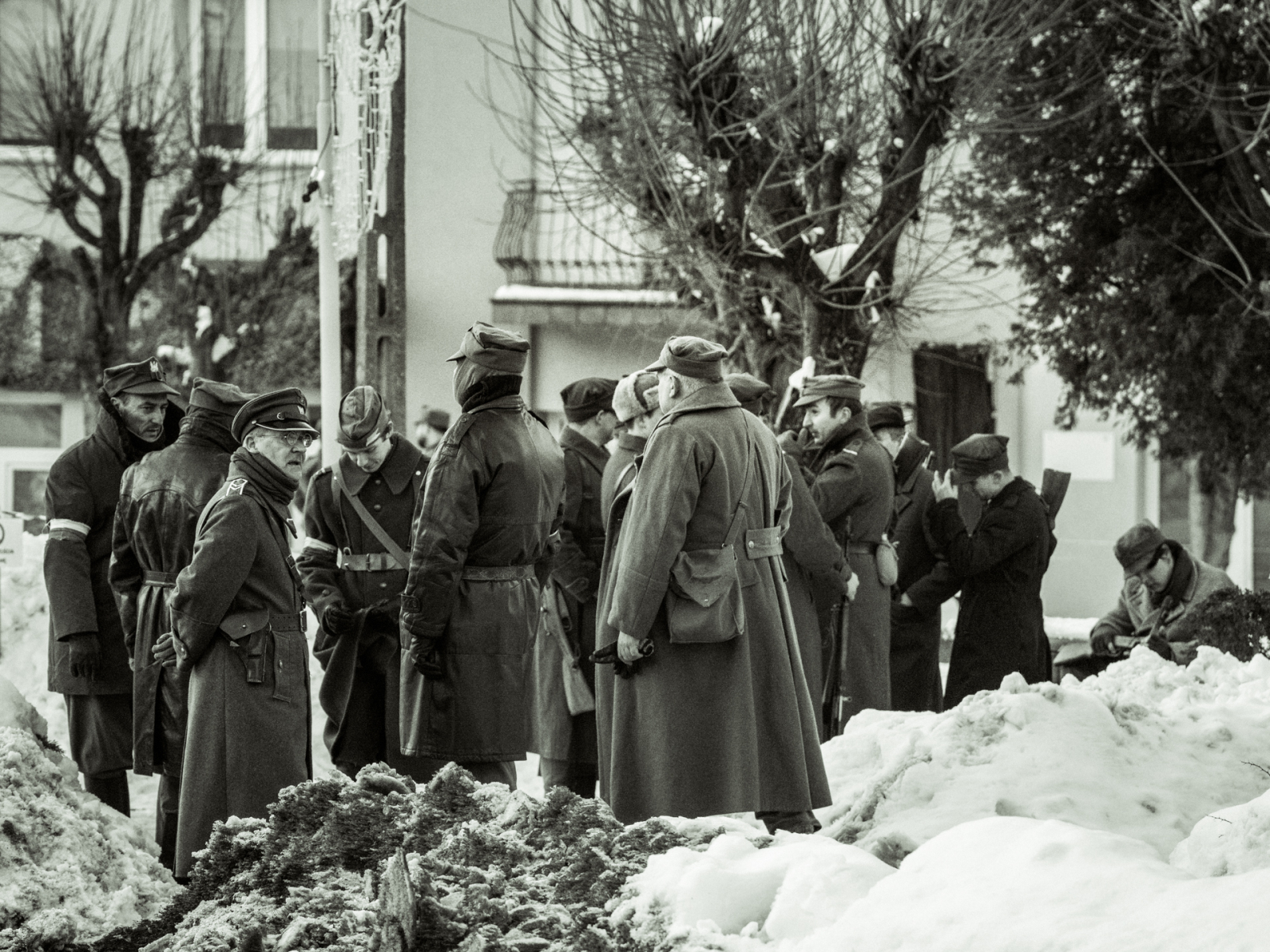 Podczas sesji reportażowej skupiłem się na uchwyceniu dynamiki inscenizowanych walk, reakcji rekonstruktorów i detali, które budują klimat tego typu wydarzeń historycznych. Wykorzystałem zarówno klasyczne kadry z poziomu ulicy, jak i ujęcia z drona, które pokazują zabudowę Birczy, ruch pojazdów służb oraz rozmach całej rekonstrukcji. Zimowa sceneria, śnieg i dym z wybuchów oraz flary świetlne podkreśliły dramatyzm scen, tworząc intensywne, kontrastowe obrazy o wysokiej wartości dokumentalnej i emocjonalnej.