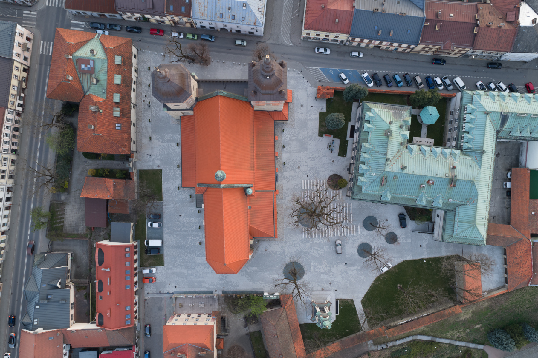 Największą siłą zdjęć wykonanych z powietrza jest możliwość pokazania starego miasta jako spójnej całości. Z góry widać nie tylko pojedyncze budynki, ale też relacje między nimi: przestrzeń rynku, historyczną zabudowę, ciągi komunikacyjne i zielone strefy wtopione w tkankę miasta.